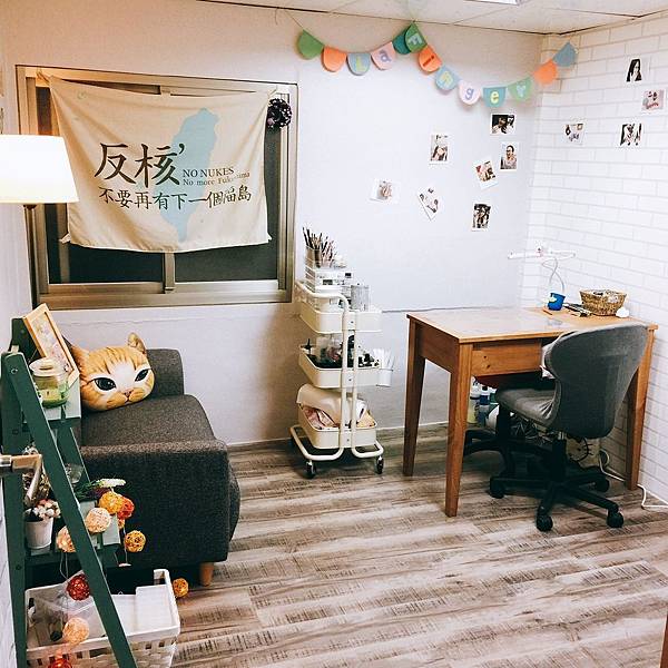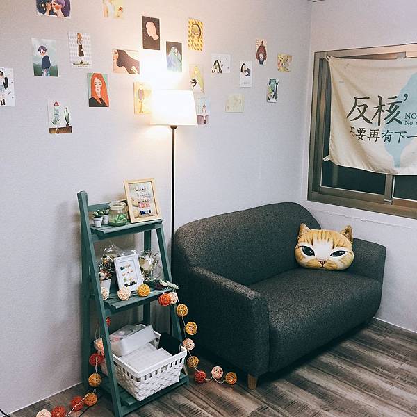 窗上掛有文青必備反核旗~我房間也有掛,某次大掃除我媽偷偷想把它丟掉