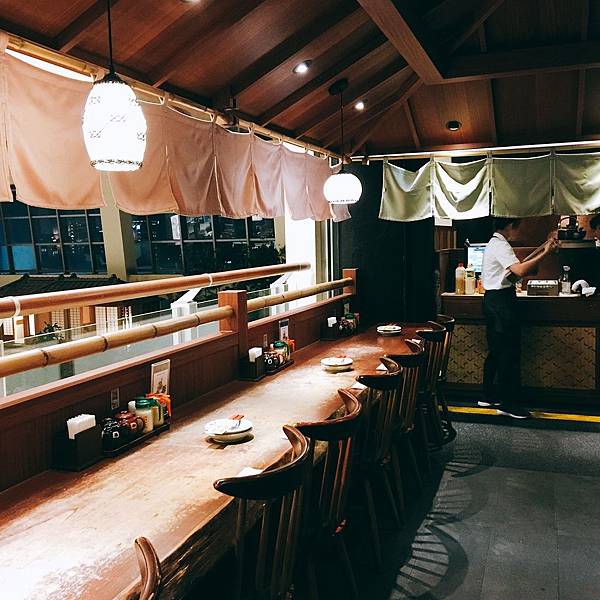 只拍了用餐完畢臨走時才淨空的個人座位區和四人木椅區