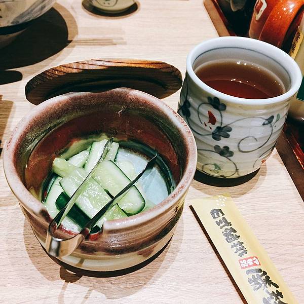 送上熱茶和小菜~醃小黃瓜
