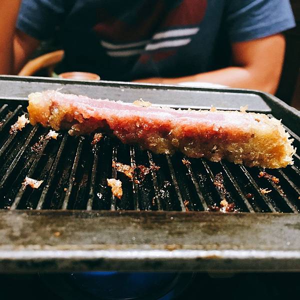 黑色的爐子是要自行把牛排烤熟用的點菜的時候服務生會先提醒,炸牛排會需要自己再行煎烤至熟