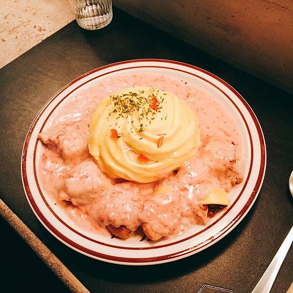 腦汁漏了一地的網美小姐點了跟上次一樣的奶油甜菜根雞腿排歐姆蛋飯(內用200元/外帶170元)