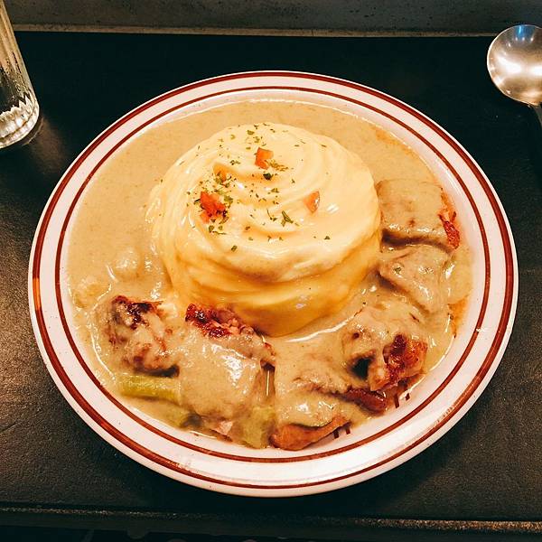 La說她覺得紅酒牛肉醬有點偏鹹,雞腿排煎的有香氣,整體來說還不錯