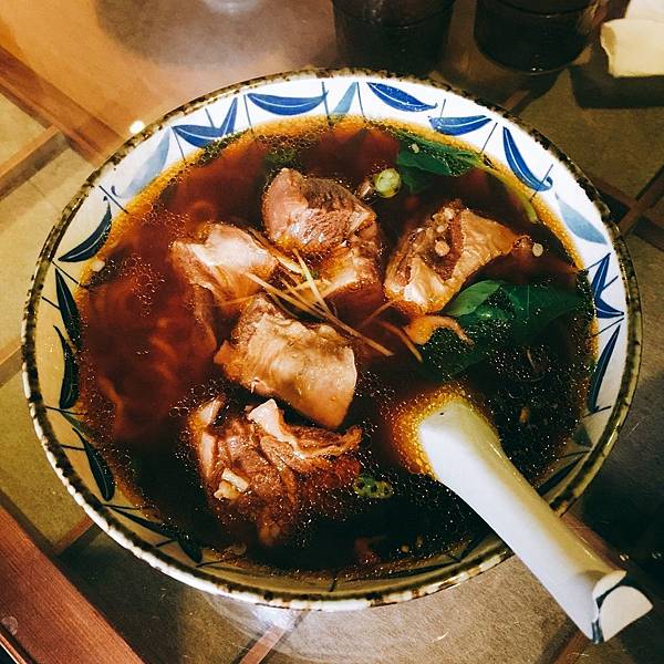 這是紅燒牛肉拉麵,湯頭有淡淡的中藥味,味道很濃郁不會死鹹