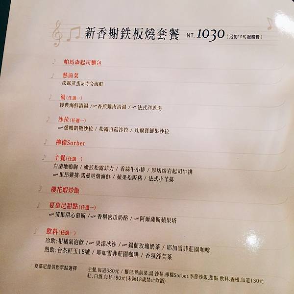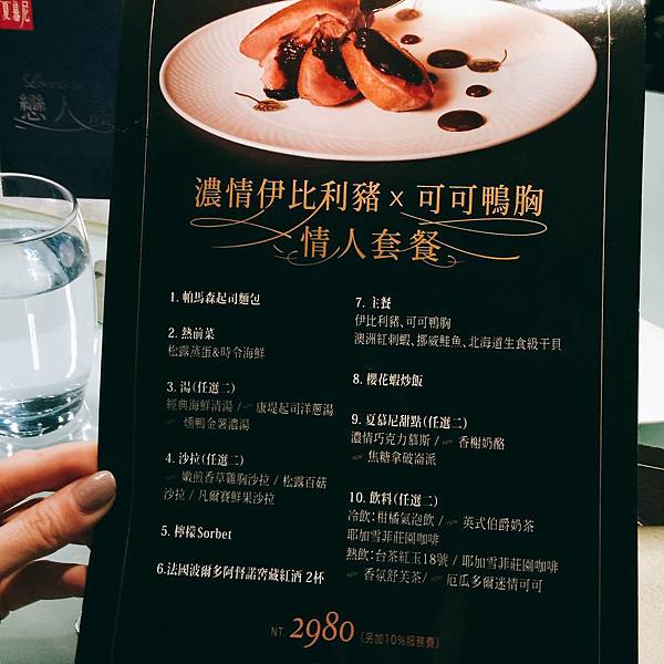 服務人員說因為最近配餐有新推出的菜色,但這張情人套餐菜單尚未更新
