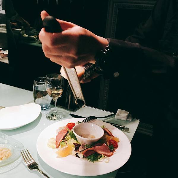 服務小姐會在上面現場磨上一層起司,優雅的起司屑屑掉落像下雪一樣浪漫~