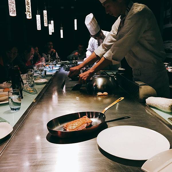 但因為我們的位置很角落,主廚料理平台的正前方又坐滿了香港人
