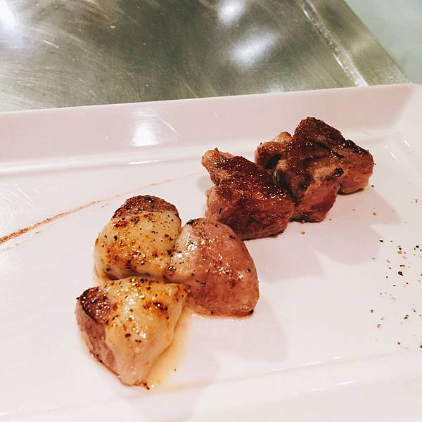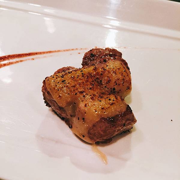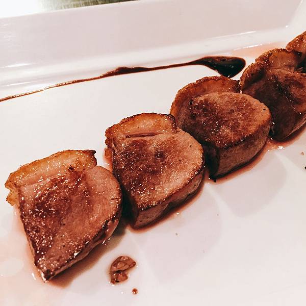 一人有三小塊伊比利豬的菲力部份,主廚在上頭為肉肉蓋上了起司被被