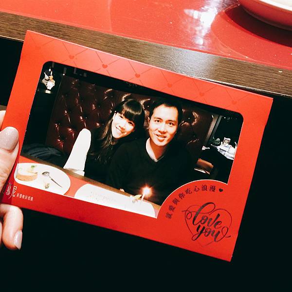用餐時服務小姐有來詢問是否有本月壽星,剛好買帆是3月底的雙魚寶包