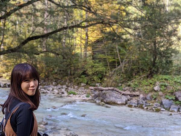 一路上沿著小河走,河水有夠清澈,藍到不可思議