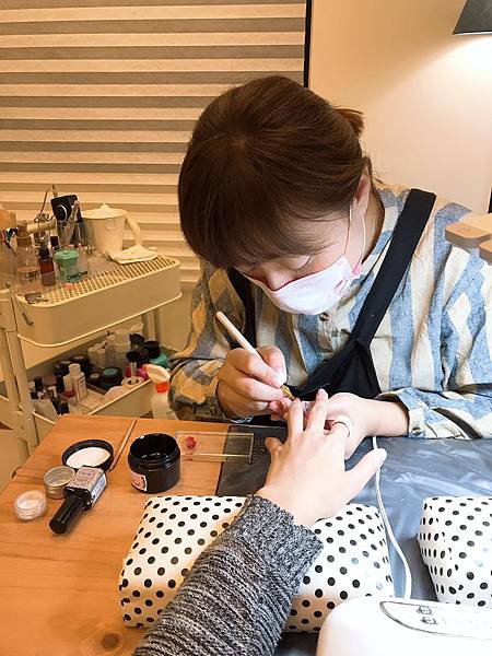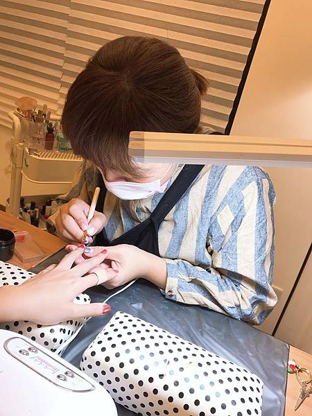 然後放一顆亮晶晶石頭在客人指甲上推薦人家按摩太陽穴(有事)