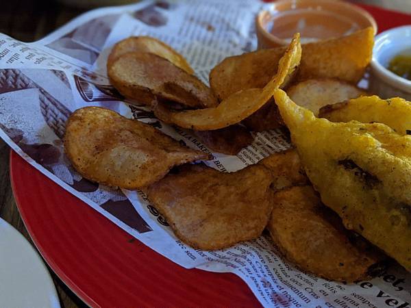 旁邊配的是一片一片薄薄的炸得酥酥的薯片