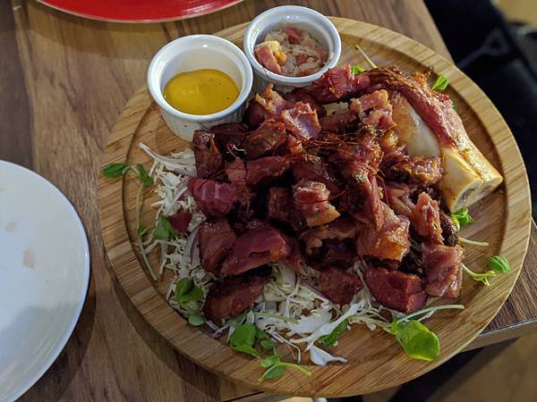 德式烤豬腳佐酸菜培根 520元