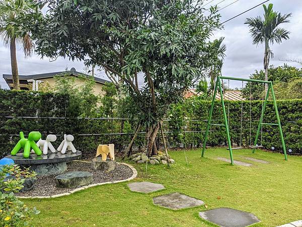 庭院設置有許多小朋友可以玩耍的設施,滿適合親子同遊