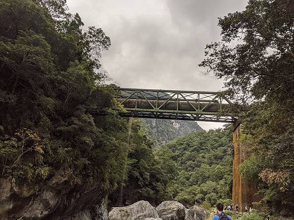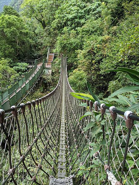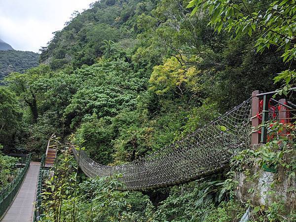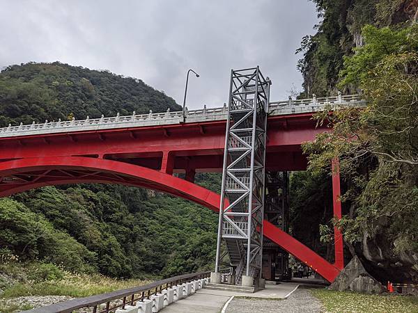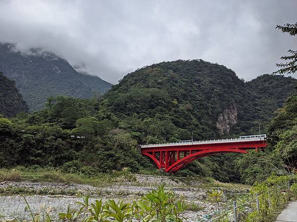慢慢走一陣,就可以看到砂卡礑步道入口那座紅色的橋了