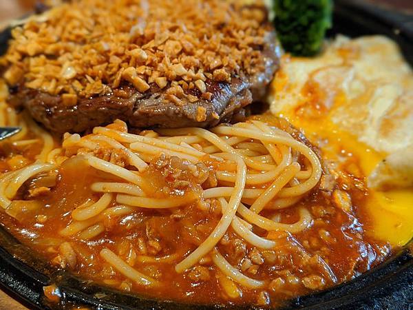 鋪在牛排上,端上來時給人感覺份量很大,視覺效果滿好的