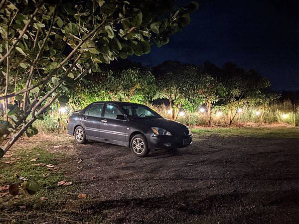 把我們的浪跡天涯小破車停妥之後,驚嘆了會兒停車場點的照明小燈好漂亮