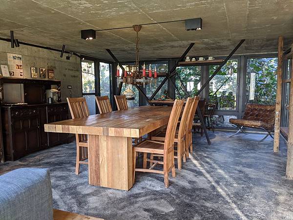 中間是餐廳與交誼廳,右側則是旅人住宿的房間們