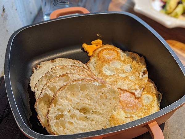 第一天的早餐是麵包、荷包蛋和沙拉與湯品