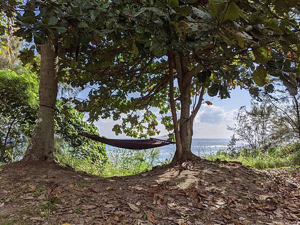 躺在吊床上看得到海!
