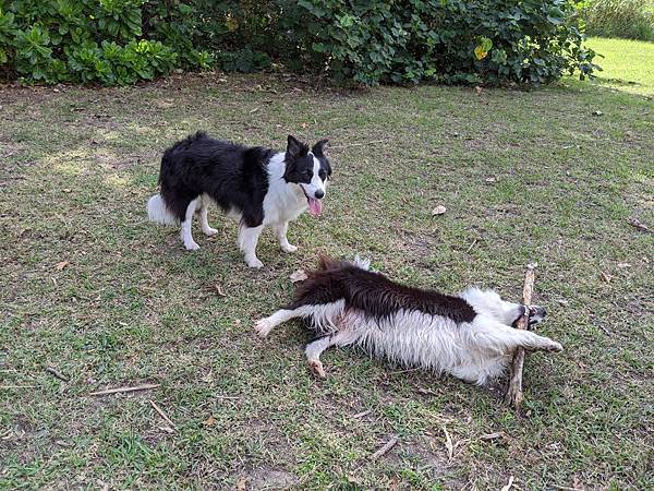 沒有飛盤的時候就一直逼我們丟漂流木給他們撿
