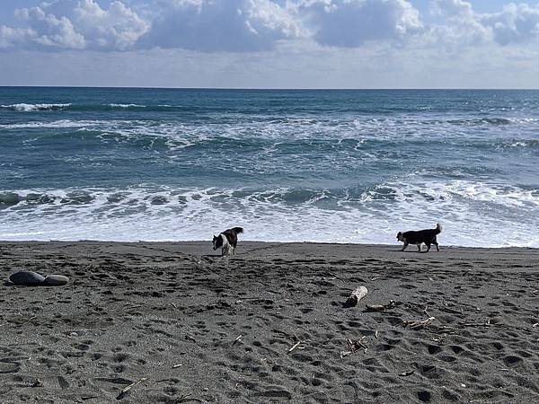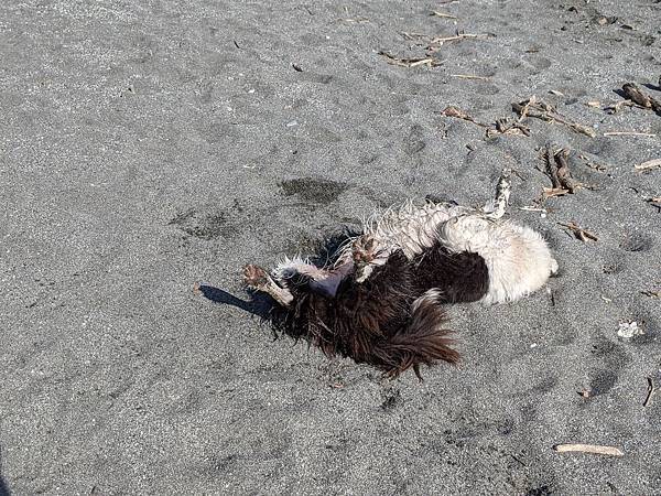前面這隻小髒鬼剛剛去海邊滾過一圈毛很濕XD