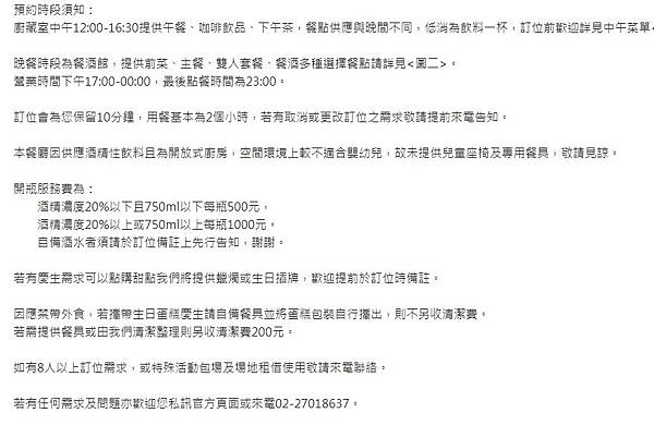 例如開瓶費怎麼算、用餐限時、攜帶蛋糕規定等等