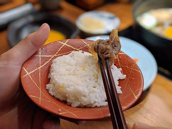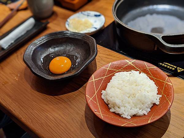 壽喜燒會附上一碗白飯與生蛋黃