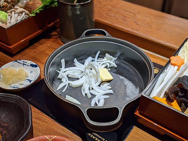 壽喜燒的鍋底會放上洋蔥與奶油
