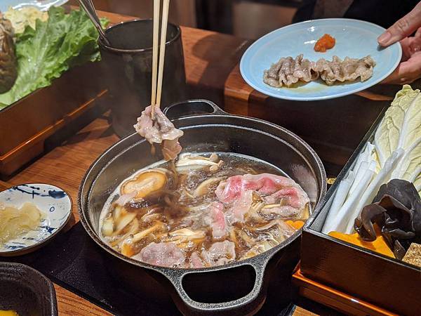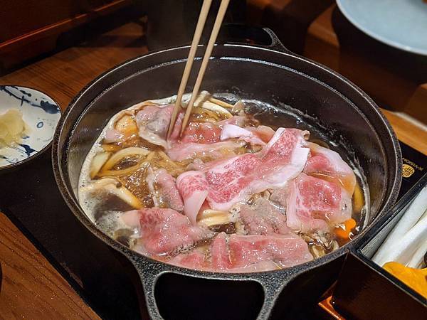 壽喜燒部份,師傅會一次把肉全下
