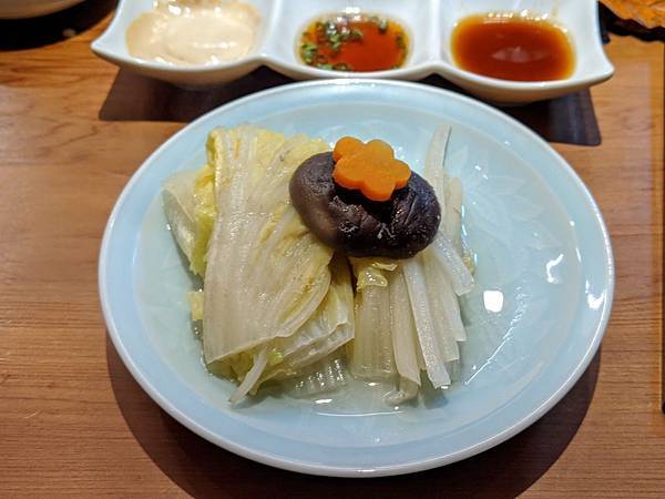很大一片可以分成三個部份,沾不同的醬汁吃