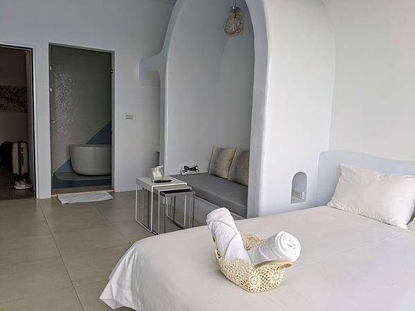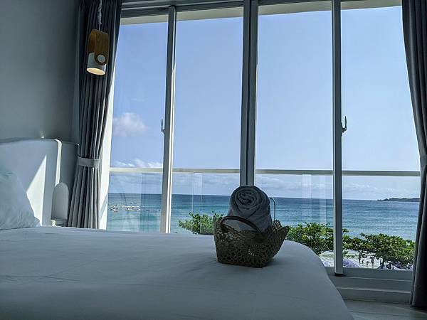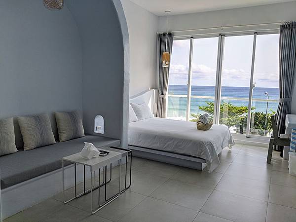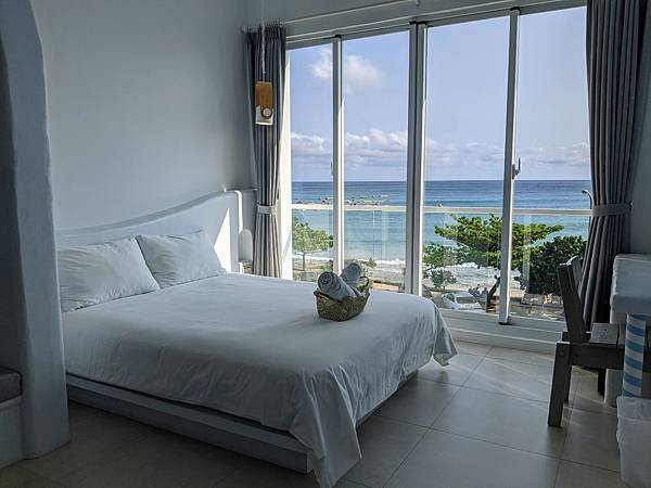 一打開房門就是讚嘆好美~純白的房間、大海的顏色
