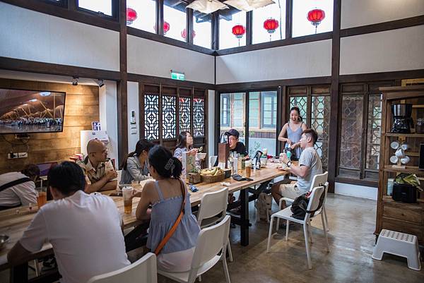 中央是一張長長的桌子,可以在這邊用餐聊天